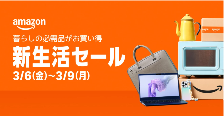 アマゾンジャパン合同会社(東京都目黒区、ジャスパー・チャン社長)は、「Amazon 新生活セール」を、2026年3月6日(金)0時から3月9日(月)23時59分までの4日間開催する。