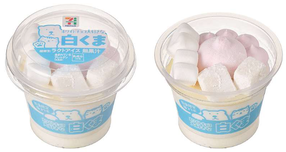 「セブンプレミアム ホワイトチョコ大好きな白くま」は肉球をモチーフに、ピンクの肉球部分は苺風味のホワイトチョコアイス、白い部分はハート型マシュマロとホワイトチョコ風わらびもち。価格は368円で2月10日(火)からすでに数量限定で発売している。