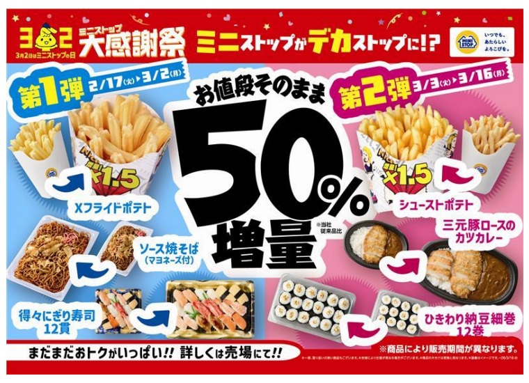 ミニストップnews|今年の大感謝祭は「増量フェア」2/17から開催