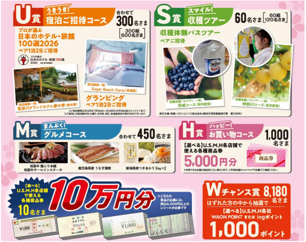ユナイテッド・スーパーマーケット・ホールディングス(株)(東京都千代田区、井出武美社長)は、2026年3月1日(日)~3月31日(火)の期間、グループ企業(株式会社マルエツ、株式会社カスミ、株式会社いなげや、株式会社イオンフードスタイル)による「総計1万名に当たる!新会社『イオンフードスタイル』 誕生記念!ふくらむトキメキキャンペーン」を開催する。