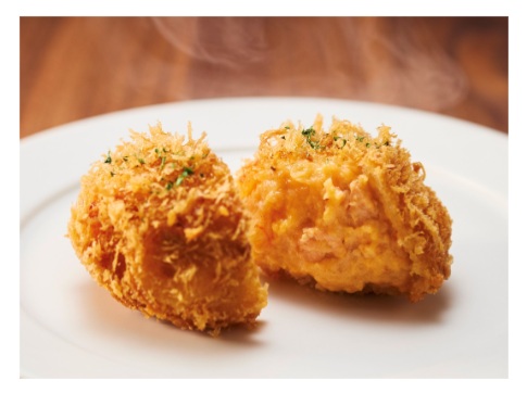さらに、新商品となる海老、蟹、サーモントラウトの豪華な素材を詰め込んだ、コクのある濃厚なクリームコロッケ「海老・蟹・サーモントラウトのクリームコロッケ」も、4月23日(木)~5月13日(水)の期間限定で発売する。1個324円。