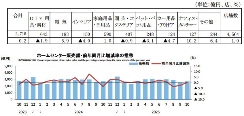 最後に、ホームセンター販売額は2715億円で0.2%増。