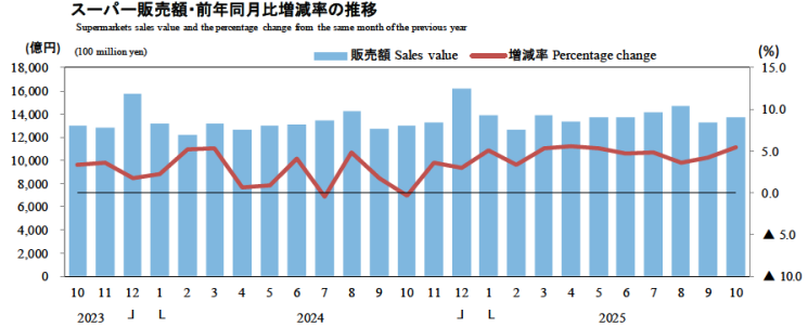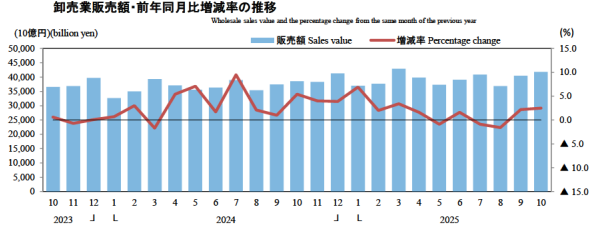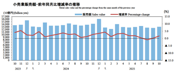 経済産業省大臣官房調査統計グループが2025年10月の「商業動態統計速報」を発表した。「商業」とは「小売業」と「卸売業」の総称で、小売業・卸売業を営む企業と事業所・店舗の事業活動に関する動向を把握することを目的に調査される。
