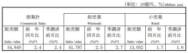 10月商業統計|販売額55兆円2.4%増、うち小売業は13.5兆円1.7%増