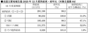 日本生活協同組合連合会(東京都渋谷区、新井ちとせ代表理事会長)が、全国の64主要生協の2025年12月度の供給状況(売上高)を発表した。