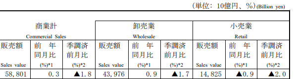 12月商業統計|販売額58兆円0.3%増、うち小売業は14.8兆円0.9%減