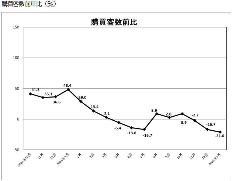 1月百貨店インバウンド動向|免税売上高501億円19.1%減/購買単価2.4%増