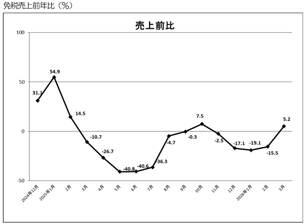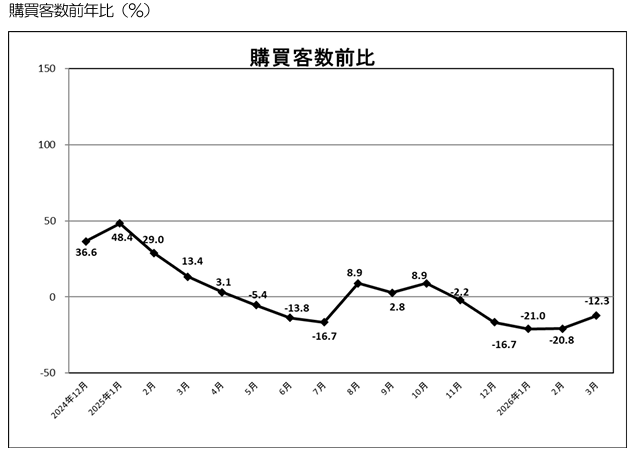 (一社)日本百貨店協会(東京都中央区、好本達也会長)のインバウンド推進委員会が、2026年3月の外国人観光客の「免税売上高・来店動向」を発表した。調査対象はインバウンド推進委員店の86店舗。