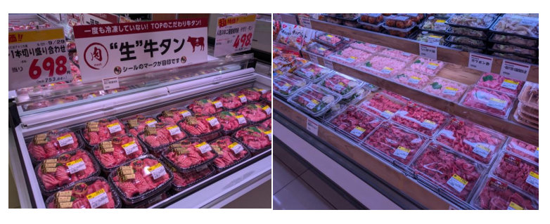 精肉部門では簡便商品など顧客ニーズに対応した、味付け肉を揃える。新たに「ローストビーフ」を展開し、名物「“生”牛タン一本切り盛り合わせ」なども品揃えする。