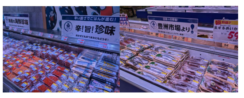 鮮魚部門は、豊洲市場よりバイヤー厳選の鮮魚の品揃えを強化する。また「辛!旨!海鮮珍味」なども地域一番の品揃えで展開する。