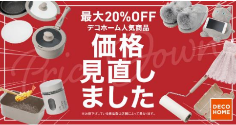 なおデコホームでは全国の店舗とニトリネットで、人気商品の価格見直しを行っている。人気商品が最大20%引きで提供される。