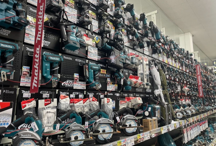 同店では建築資材・電動工具・作業衣料など、約4万6000アイテムを取り揃える。