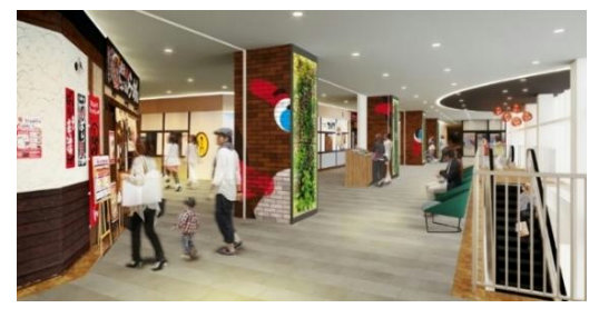 さらに施設各所に休憩用いすの設置や、携帯電話・PC充電用コンセント付カウンター席を設置する。そのほか飲食店フロアに子ども用遊び場の設置や、トイレを刷新し、バリアフリー・おむつ台の設置なども実施する。