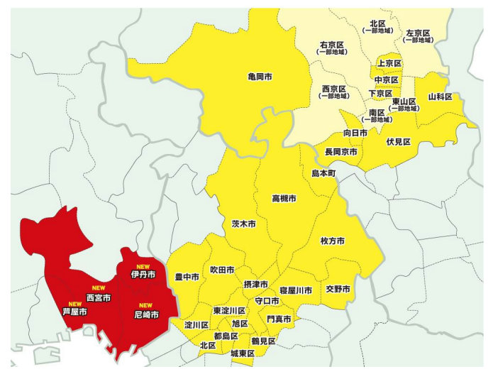 今回のサービス拡充で、配送可能エリアに兵庫県の「尼崎市」「伊丹市」「西宮市」「芦屋市」を加えた。