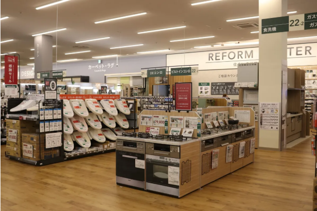 リフォームセンターでは、工事後の家の様子を想像しながら商品や工事内容を検討できるよう、実際の使用シーンをイメージした展示をする。専門知識を持つ従業員が、より快適な生活空間の実現に向けて提案・サポートする。またリフォーム専用のオンラインブースを設置していて、メーカー担当者と直接相談することも可能となっている。