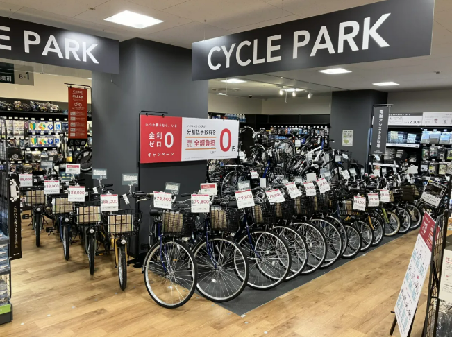 「ユアエルム成田」周辺は住宅地や学校が多く、自転車利用者が多いエリアのため、自転車の使用目的や頻度、運転時間や走行距離など、お客様に合わせたサポート・提案ができるよう、自転車本体や付属品、ヘルメットなどのアイテムを幅広くラインアップする。