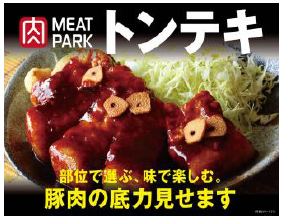 トンテキゾーンはロース、ヒレ、かたロースなどの部位に加え、ボリュームのある厚切りや一口サイズ、切れ目入りなど多彩なカットで需要に対応する。また、簡単調理で需要の高まる味付済み商品も取り揃える。