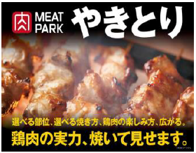 やきとりゾーンはやきとり串だけでなく、フライパンでも簡単に焼ける薄切りにした串なしやきとりも通常店舗より拡大して展開する。ハラミやせせりなどの希少部位、内臓肉も取り揃え、ワンランクアップのおつまみを提案する。