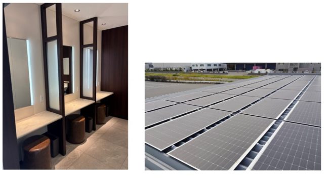 店舗内は、長時間の運転の疲れを癒しリフレッシュできるよう、快適に過ごせるイートインスペースを設置するほか、清潔で多機能なパウダールームを完備する。また、脱炭素社会への実現に向けた取り組みとして太陽光パネルを設置し、環境にも配慮した店舗運営を行っていく。