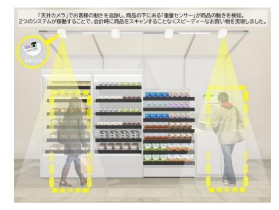 「TTG-SENSE」は、天井のカメラで人物捕捉を行うとともに、棚に設置されたセンサーでどの商品が手に取られたかを認証する。そのため、レジで商品読み取りをせずにスムーズに会計ができる。また会員登録や専用アプリも不要で気軽に購入することができる。一方で、運営面で必要不可欠なレジ業務を自動化することで、スタッフの業務も効率化できる。