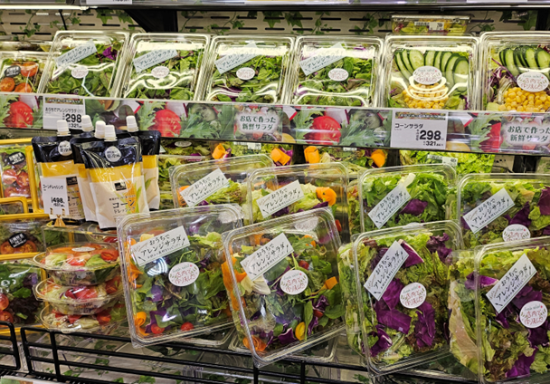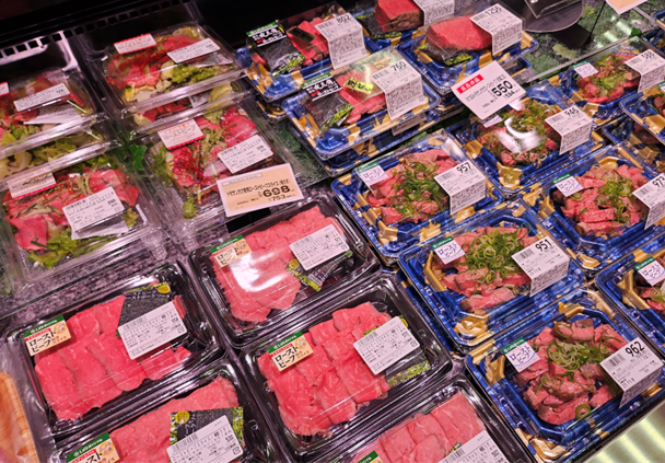 店舗は都営地下鉄新宿線篠崎駅の出入口から直結している。その1階にはライフこだわりの「お店でつくった新鮮サラダ」や冷凍していない新鮮なネタを使用した「うを鮨」、おつまみやハレの日に適したローストビーフなどが並ぶ「ミートオードブル」などを新たに導入した。