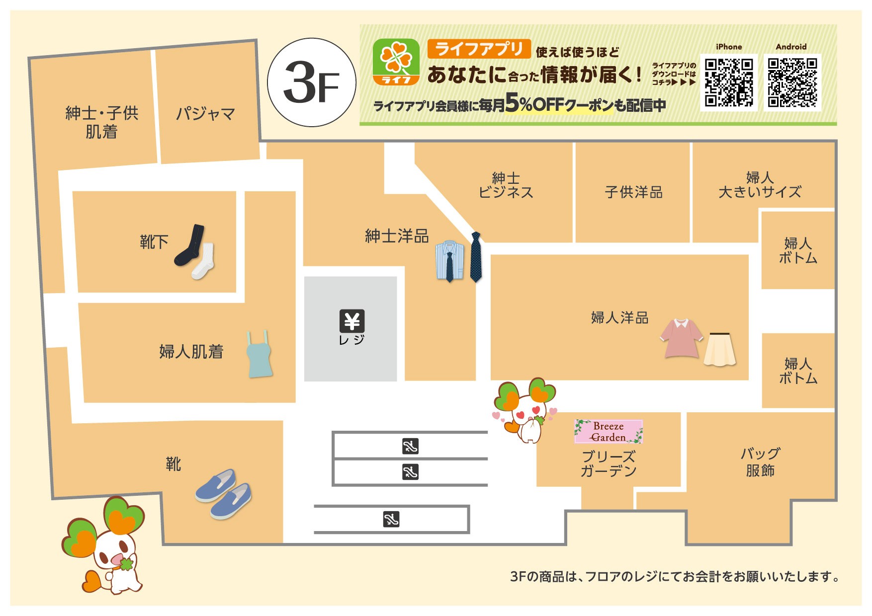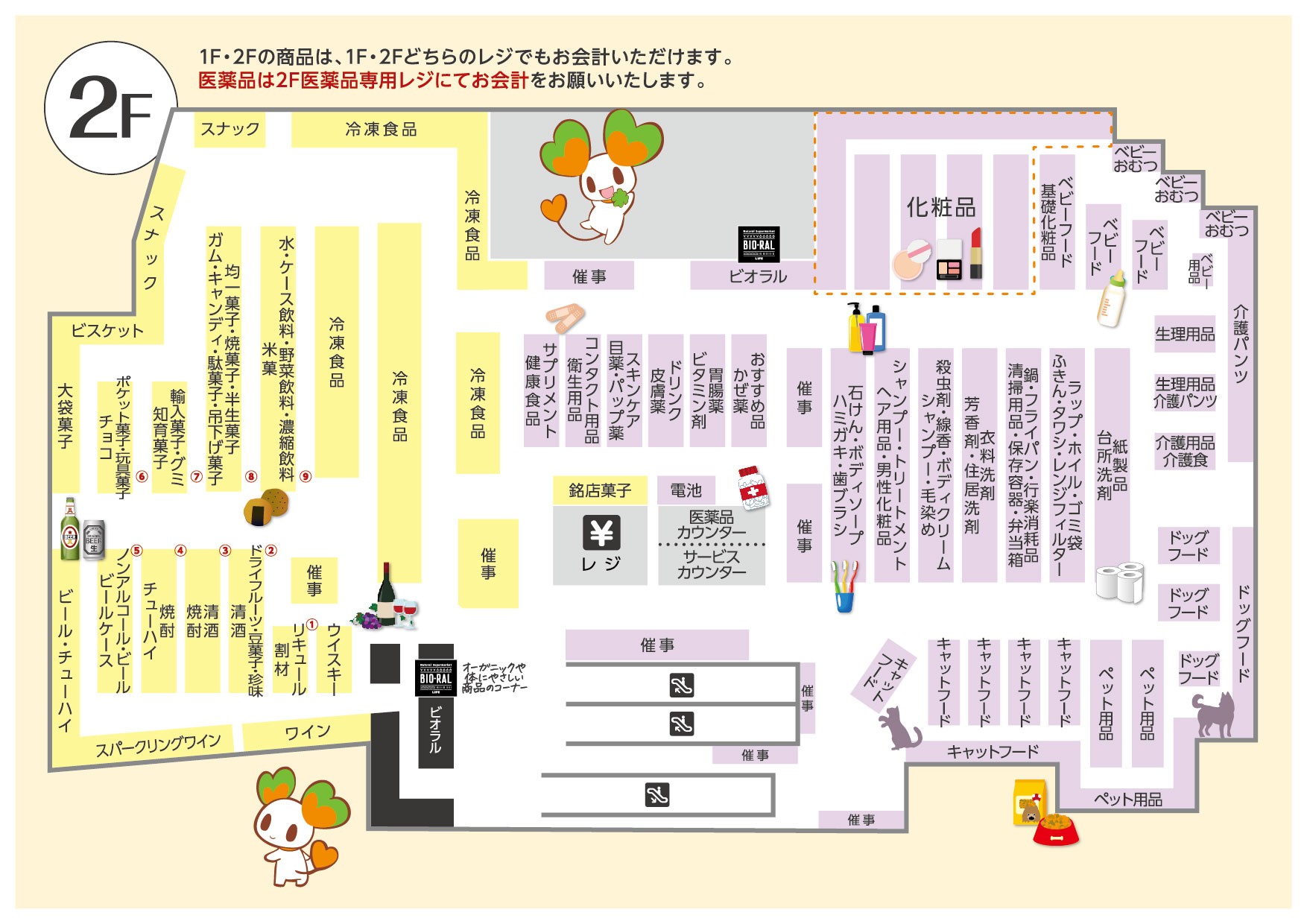 2階は一部を食料品売場に変更し、冷凍食品・菓子・酒の品揃えを拡充した。またオーガニック食品や健康にこだわった体にやさしい商品を品揃えする「BIO-RALコーナー」を導入。