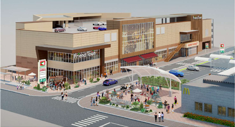 「フレンドタウン守山」は2023年に閉店した総合スーパー「平和堂守山店」跡地に、食品スーパー「フレンドマート守山駅前店」を核とした複合型施設としてオープンする。