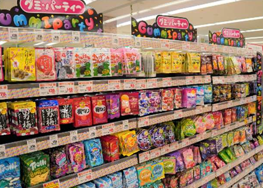 豊富な種類が揃うグミコーナーやソーセージなどの弁当商材、まとめ買いに便利な牛肉・豚肉・鶏肉のジャンボパックを用意する。冷凍食品は、おかず系から野菜や肉などの素材系まで平和堂最大級の品揃えだ。