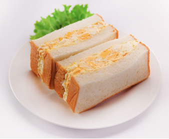 「たっぷり玉子サンド」は、卵3個分を使用したボリューム満点の商品で、1カ月に40万食を販売する。価格は199円。