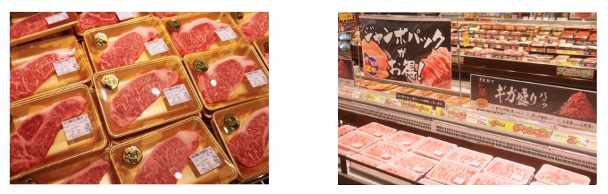 精肉コーナーで扱うベイシアブランド牛「とろ牛」は、プロの目利きが厳選した肉質4等級以上の牛を一頭買いし、赤身から霜降りまで多彩な部位を用意する。さらに、鶏もも・むね肉は、大容量でお得なジャンボパックも品揃えする。