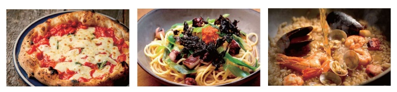 提供するのは、生パスタ、窯焼きピッツァ、リゾットを中心としたイタリアンメニュー。店内で粉から発酵、熟成を行う“窯焼きピッツァ”や提携先の製麺所から仕入れるモチモチの生パスタ、本場同様にブイヨンで煮込む十六穀米ブレンドリゾットなど、手づくりにこだわっている。また果汁 100%フルーツジュースやバリブレンドコーヒー、アムシュティーなをラインアップするプレミアムドリンクバーもある。
