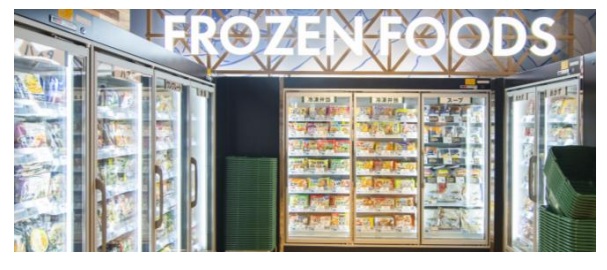 日配・加工食品コーナーでは、即食のワントレー冷凍食品などを展開。また、トップバリュなどグループシナジーを活かした商品を取り揃える。