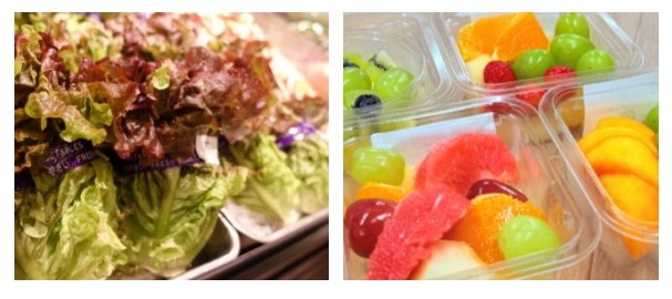 青果コーナーでは、地元小平市の農家から直納する新鮮な野菜のほか、食べやすい量と値頃価格のカットフルーツを取り揃える。
