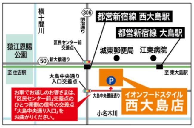 1973年にオープンした「ダイエー大島店」を2021年2月に営業終了した跡地に、新たな店舗として「イオンフードスタイル西大島店」を出店する。場所は都営新宿線「西大島駅」から徒歩3分にあるパークアクシス西大島コンフォートスクエアの1階。