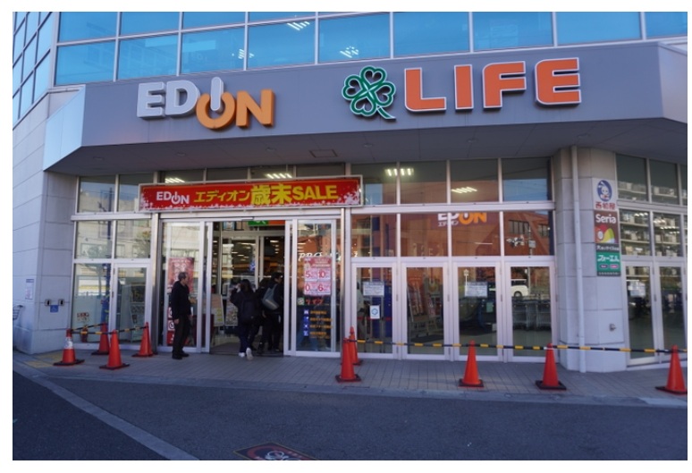 建物構造/鉄骨造り 地上4階建て、売場:1階 ライフ、2・3階 エディオン