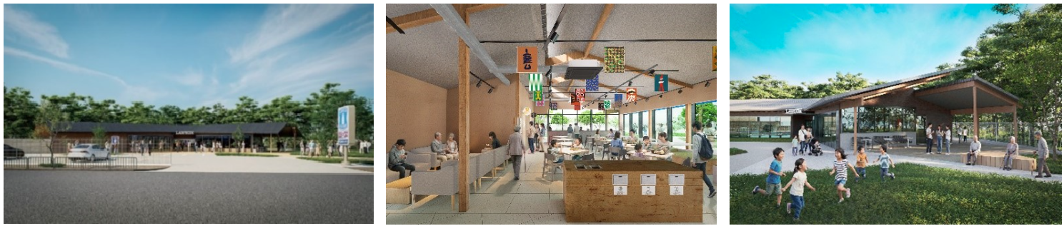 外観イメ―ジ 店内カフェコーナーイメージ 屋外活動広場イメージ