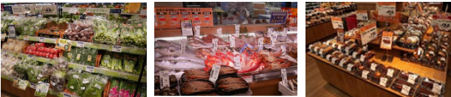 水産売場は、三河一色、名古屋本場市場などの地物鮮魚をはじめ、全国各地厳選した旬の新鮮な鮮魚を販売する。切身、お造りなど、顧客の要望に合わせて、調理・加工し、おすすめの食べ方などを提案する。さらに、渥美プレミアムラスサーモン、愛知県産しらすなどじもの商品をはじめ、自家製の西京漬けなどこだわりの商品を提供する。