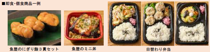 また鮮魚コーナーでは、京都舞鶴漁港や全国各地から届く旬魚を店頭で毎日、対面販売する。また、京都舞鶴漁港で水揚げされた鮮魚を盛り込んだ「海鮮お刺身盛り合わせ」を販売する。