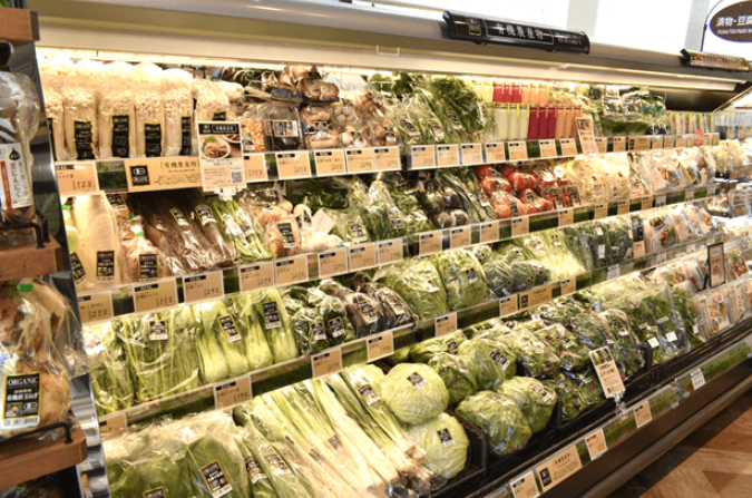 池袋は会社や学校、商業施設が多数あって駅利用者が多いため、オーガニック原料を使用した商品や食品添加物に配慮した惣菜・弁当を豊富に取り揃える。