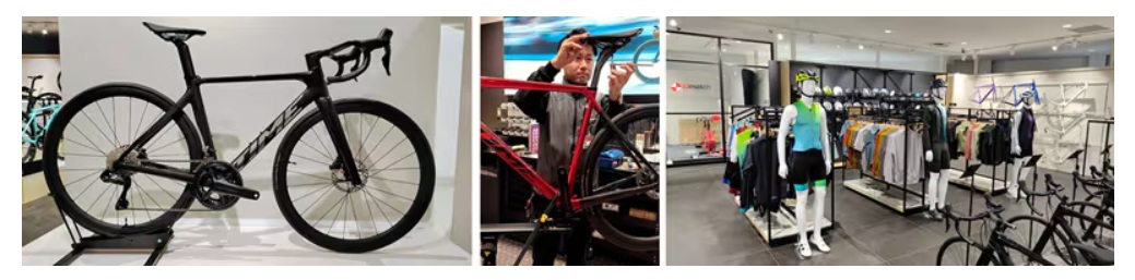 同店での取り扱いブランドは、フランス発のカーボンフレーム専門ブランド「タイム」、メイドインジャパンのカーボンロードバイク「ヨネックス」、幅広いサイズ展開で多くのユーザーに対応する「チャプター2」の希少ブランドをはじめ、「ビーエムシー」「オルベア」、「デ・ローザ」など人気ブランドを幅広く品揃えする。