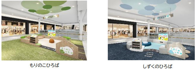 同じ3階には子どもの遊び場として、2歳までの乳幼児を対象とした「もりのこひろば」と「しずくのひろば」をつくる。六甲山や布引の滝など、自然豊かな神戸市をイメージした遊び心ある空間に刷新。遊び場周辺をカーペットで囲い、クッション性のある遊具を設置することで、安全性に配慮しながら親子で楽しめる空間を提供する。