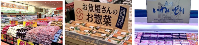 鮮魚売場は「お魚屋さんの焼き魚」の導入と「まぐろづくし」コーナーで「まぐろ」の品揃えを拡充する。また、冷凍多段ケースを設置し、冷凍加工品や簡便シーフード類の品揃えを充実させた。簡便商材の各種「煮魚」など調理済み商品を品揃えする。