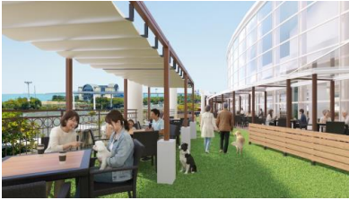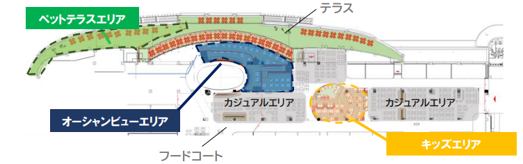 ペット同伴の顧客専用の「ペットテラスエリア」では、ペットと一緒に食事ができる。隣接する泉南ロングパークから階段で直接アクセスできる動線も整備される。