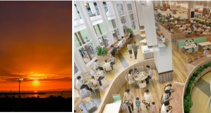 海を望むロケーションを活かした「オーシャンビューエリア」を新たに設け、開放感ある景色を見ながら食事ができる空間へと生まれ変わる。夕暮れ時には、「日本の夕陽百選」にも選ばれた「泉南マーブルビーチ」の景色を一望できる。