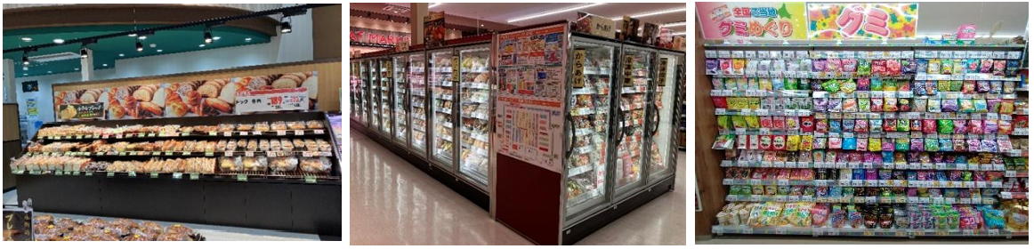 グロサリーは売場中央に通路を設け回遊性を向上させる。菓子はグミやチョコレートの品揃えを大幅に拡大し、新たに「海外のお菓子」コーナーを導入する。