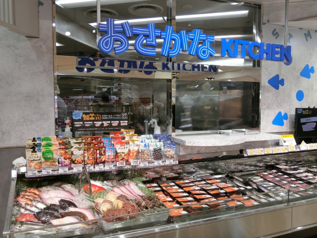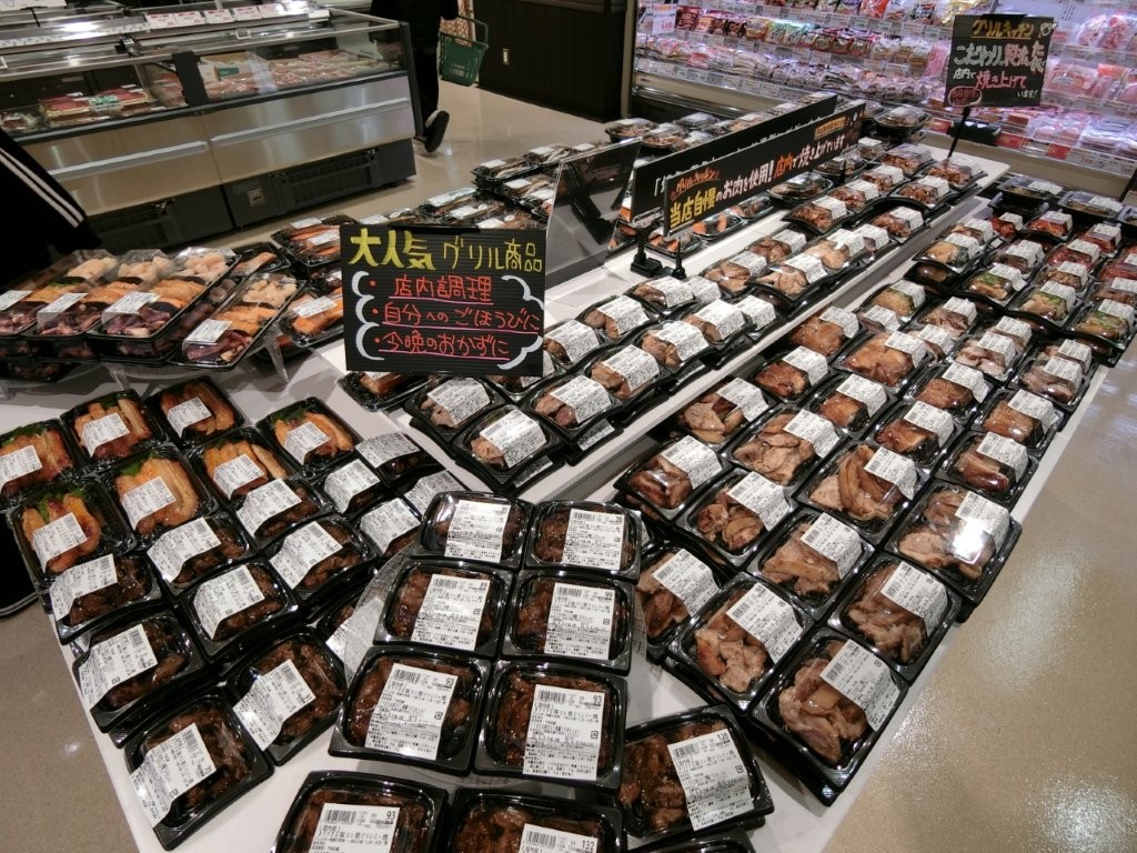 また、精肉・鮮魚の各売場中央には、店内で調理したお肉総菜や焼魚・煮魚をまとめてコーナー化し、即食需要を強力にサポートする。