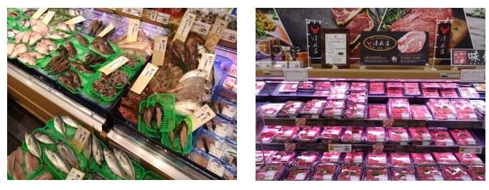 水産売場では、毎日対面販売を行い、火曜・土曜には鳥取県網代港直送の新鮮な魚を販売し、調理方法も提案する。また、山陰や岡山県産の旬魚を店内で煮つけや唐揚げに加工し、「魚魚炎」で提供する。畜産売場では、岡山特産の白桃や県産飼料米を使った飼料で育つ地元銘柄牛「清麻呂」を新たに扱い、さらに“ホルモンうどん”向けの国産牛ショウチョウを導入するなど、地域の食文化に合わせてホルモン類の品揃えを強化する。