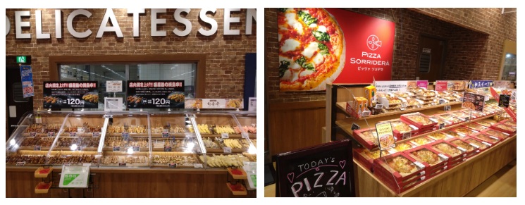 総菜売場では、焼鳥串のばら販売を展開し、「ピッツァソリデラ」では店内で一枚ずつ丁寧に伸ばして高温の窯で一気に焼き上げたピッツァを提供する。また「リワードキッチン」では、岡山の銘柄鶏「森林どり」を使用した「森林どりのタルタルチキン南蛮」をはじめ、約25種類の総菜を取り揃えする。