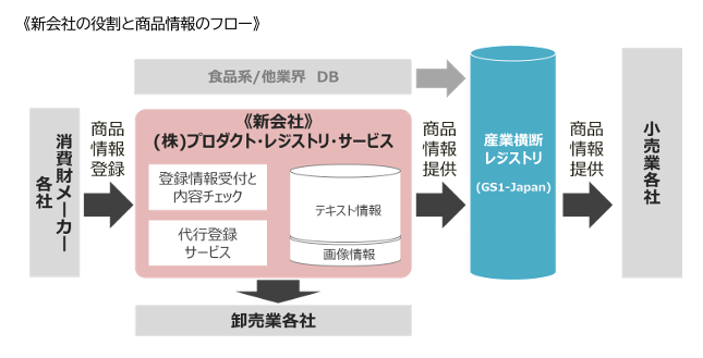 この課題は、経済産業省でも「商品情報連携標準に関する検討会」および「商品情報連携会議」で同様の認識がなされている。「商品情報の標準化」や産業横断レジストリーを通じた「商品情報プラットフォーム構想」を目指した取り組みが進められている。そのため、3社は産業横断レジストリーとの連携を前提として、生産性が高い流通実現に向けた商品情報の標準化と一元管理を目的とした新会社を設立することになった。
