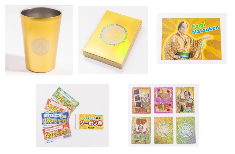 ファミマツケン福袋には、A6サイズの「ファミマツケン でっかいトランプ」や「ステンレスタンブラー」、「ランチョンマット」など、正月を楽しく過ごせるファミリーマートオリジナルグッズが詰まっっている。またおまけとして同梱する「おみくじ開運カード」には、絵柄に応じて松平氏の直筆サインやファミマポイントがもらえるクーポンが当たる仕掛けも用意する。さらに、3000円相当のクーポン冊子も同封する。本体価格で3000円。